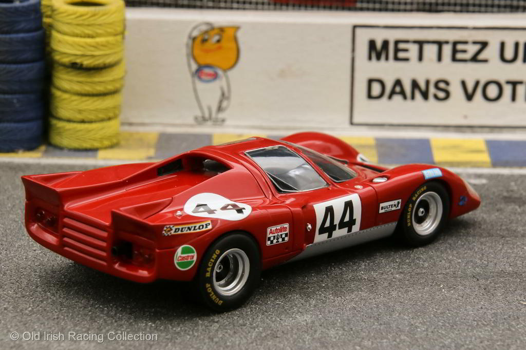 1970 Chevron B16-BMW (Le Mans, 1970): Entered by Chevron and Paul Watson Racing, this was the second of two cars entered by Chevron at Le Mans in 1970. Owned by Paul Watson, It was driven by Clive Baker and Chevron driver and owner Digby Martland. This car had a brand-new chassis, which had a 2.0L BMW 4-cylinder engine. The car had been running as high as 20th position when it was forced to retire with a broken valve spring at around 10 am Sunday morning and they had completed 167 laps. Model by SPARK 1/43 |