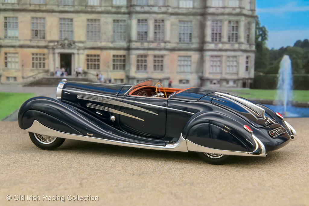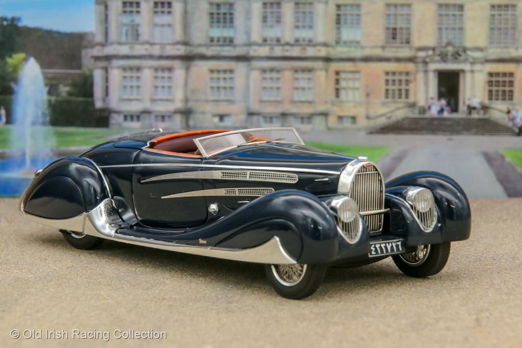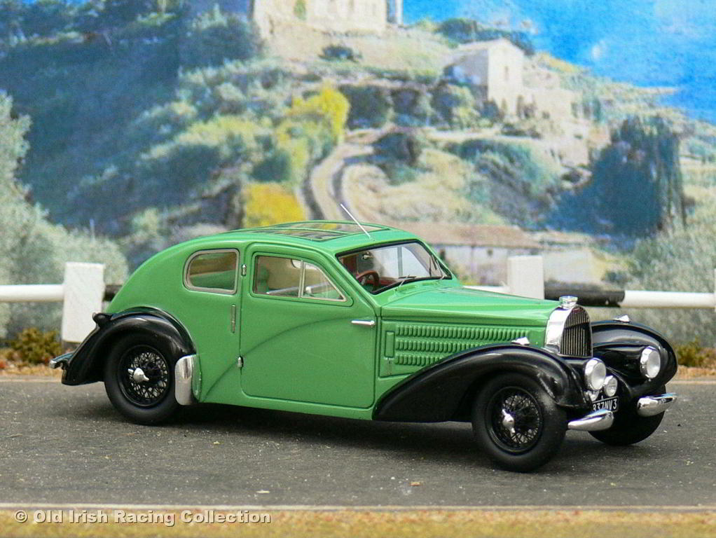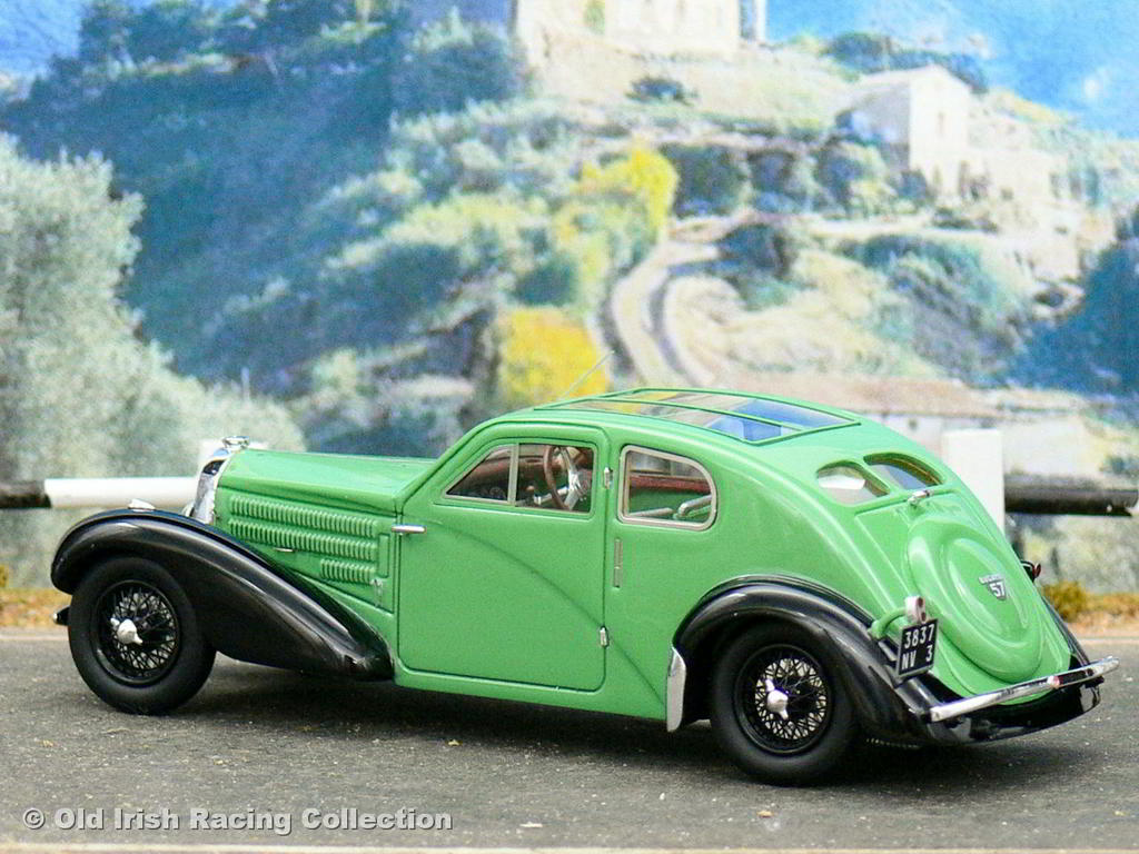 1934 Bugatti T59 (Monaco GP, 1934): The race continued in this order until the closing laps when brakes and tires both began to fade. Holding a comfortable lead, Chiron slid his Alfa Romeo into the sandbags at the Station hairpin and could not get going again before his teammate Moll had passed him. Not long after, Straight in the Maserati slid off course and was able to resume the race, but well down the order. This elevated Dreyfus into third spot where he remained the rest of the race, giving Bugatti not a win, but a very good result for the first race of the new T59. Guy Moll won the race and would be the youngest Monaco GP winner until Lewis Hamilton won the F1 race there in 2008. The finishing order was Moll and Chiron in Alfas, Dreyfus in the Bugatti and Marcel Lehoux in another Alfa, passing Nuvolari in the other Bugatti Teams T59 for fourth. While Dreyfus would win the Belgian GP in the T59 at Spa in the rain, but with the might of the Mercedes and Auto Unions in GP racing in 1934, Bugatti looked to sportscar racing instead. Model by LE MANS MINIATURES 1/18 |