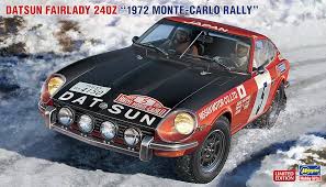 1972 Datsun 240Z (Monte Carlo Rallye, 1972): From 1970-1973, Nissan Works built approximately 40 special cars for international rallying. All cars were built on a Z432R chassis and early cars had lightweight steel and fiberglass body panels, as well as acrylic side and rear window. A rule change in 1972 required the use of all steel construction and glass windows, resulting in a 200 lb. weight increase. The cars were all powered by a hand assembled S30 SOHC 2.4L inline-6 engine with triple carbs and lightened components to produce 220 bhp.