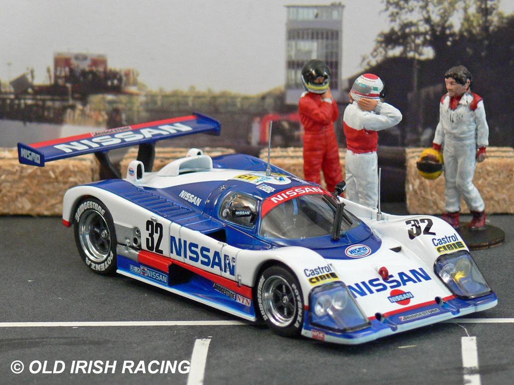 1988 Nissan R88C: Using a March designed body work and aluminium chassis, Nissan developed a new engine for its Group C car in 1988. Using a 750 bhp twin-turbo V8,the new R88C was better than the previous R87E, but still off the pace of the Jaguars and Porsches which dominated Group C. For Le Mans in 1988, Nissan entered this car driven by our friend Mike Wilds, Win Percy and Allan Grice. They finished in 14th position overall.