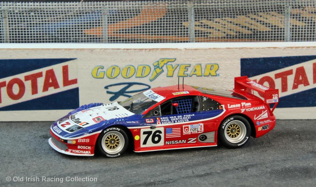 1994 Nissan 300ZX (Le Mans 1994): Coming off outright wins against the prototypes at both Daytona and Sebring, Cunningham Racing hoped to vie for an outright win at Le Mans in 1974. However, they had overestimated the amount of downforce needed and their cars had too much drag, only managing a top speed of 184 mph. Not enough top-end speed to keep up with the prototypes on the Mulsanne Straight. Powered by a 3.0L DOHC V6 that produced 700 bhp, the two Cunningham entered cars were capable, just not fast enough at Le Mans. This was the driven by Paul Gentilozzi to the win at Daytona, who was joined with Eric van der Poole and Shunji Kasuya at Le Mans. A fire during morning warm-up led to ignition system failure during the 4th hour. Its sister car, despite drive belt failure, finished 5th overall and took the class win.