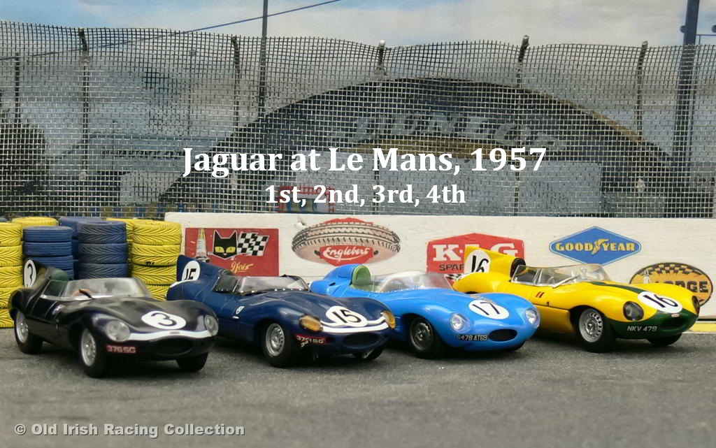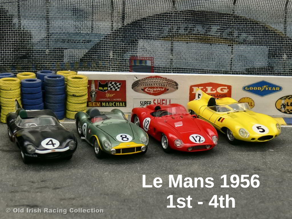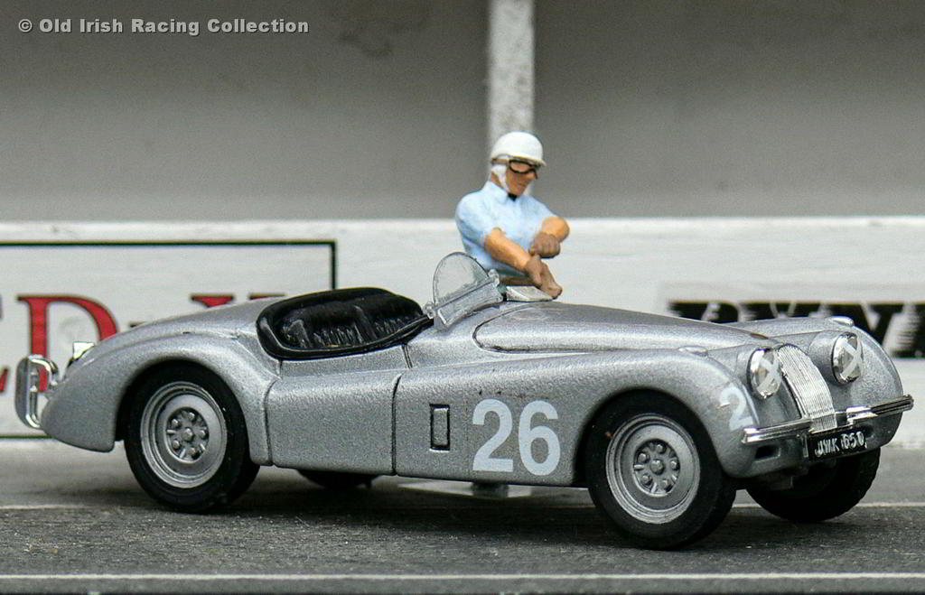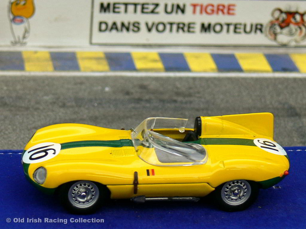 | 1956 Jaguar XK140 FHC (Le Mans 1956): At Le Mans in 1956, Robert Walshaw and Peter Bolton received factory support for their XK140 entry. Jaguar felt having a near stock production car finishing well would help sales. They were disqualified in the 21st hour for taking on fuel too early while in the top ten positions and leading their class. Model by RECORD 1/43 |
