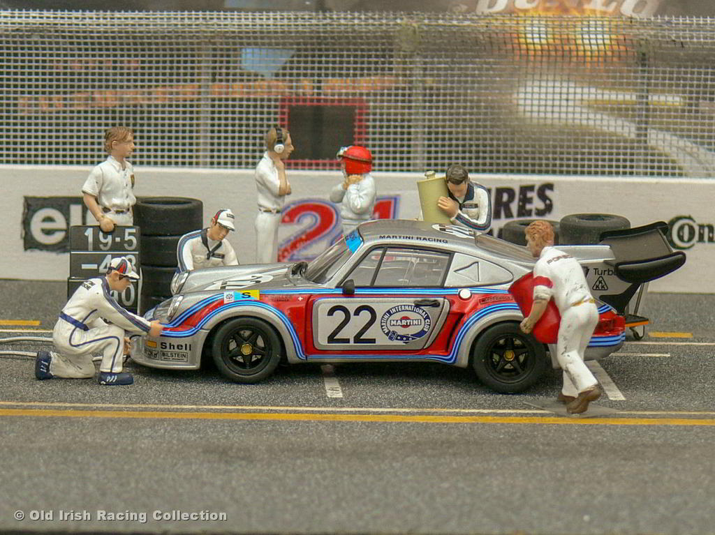 Le Mans movie set diorama: I wish my dioramas were this good! I came across this 1/43 scale diorama of the Le Mans movie set while surfing the Internet. The builder is M. Jean-Claude Baudier of Chrono 43 and the photos are from AutoModelisme magazine. This is a fantastic piece centered around Steve McQueen and his film company's set during the filming of this classic racing movie. I wish I had this skill! A side note: McQueen's character Michael Delaney wore a blue helmet and Gulf team driving suit. McQueen in real life wore a white helmet with red stripes and white coveralls with blue stripes. |